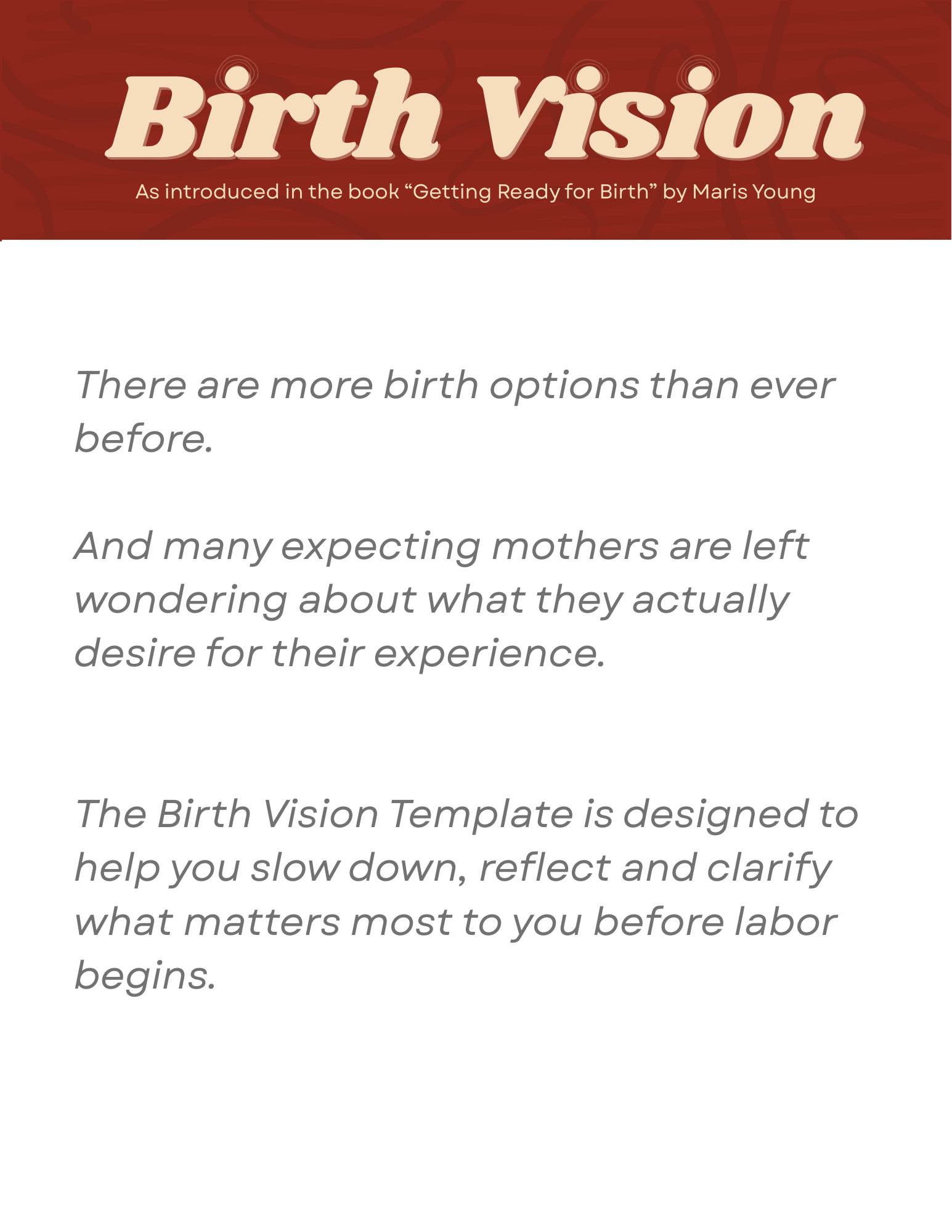 I’ve created a free Birth Vision Template to help you gently explore which elements you’d like to include in order to create an enjoyable birthing experience.
